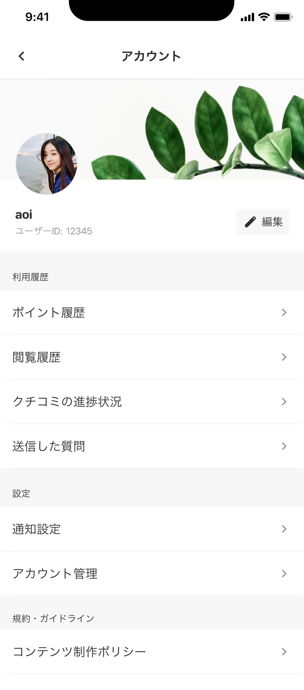 ※アカウント管理は、アプリのバージョン v2.9.0以降でご確認いただけます。表示されない場合、お手数ですがアプリのアップデートをお試しいただきますようお願いいたします。